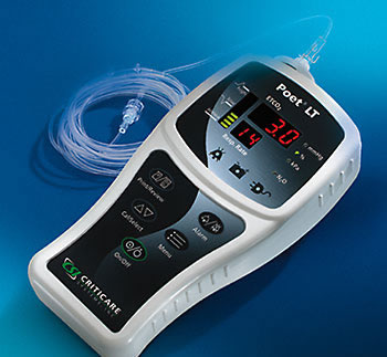 Poet LT- компактный, удивительно легкий портативый прибор, который при этом обладает всеми возможностями сложного монитора пациента. Poet LT точно измеряет частоту дыхания и уровень концентрации С02 на выдохе с N20 компенсацией. Универсальная технология забора газа на анализ не требует использования специальных дорогостоящих адаптеров. Сверхбыстрый разогрев и автокалибровка позволяют в считанные секунды начать мониторинг. Звуковые и визуальные тревоги обеспечивают мгновенное оповещение о критических изменениях состояния пациента. Встроенная память позволяет записывать значения, полученные в течение 24 часов, и распечатывать их на внешнем принтере, дополнительно подключаемом к прибору.