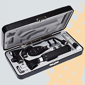 лампой 2,5/3,5 В. Состав: отоскоп, офтальмоскоп, назальный расширитель,