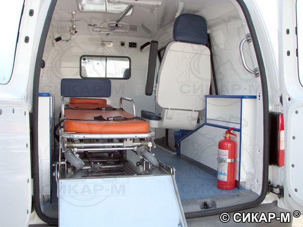 Отделка бортов и потолка салона алюминиевым листом (устойчивым к воздействию лекарственных препаратов и моюще-дезинфицирующих средств, имеющим гладкую поверхность, не впитывающим запахи) |